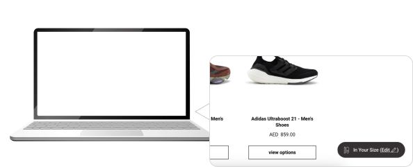 1 ابدأ تجربة التسوّق المخصصة عبر الضغط على خاصية إيجاد المقاس (Fit Finder) الموجودة أسفل الصفحة واختر العلامة التجارية والمقاس الذي يناسبك.